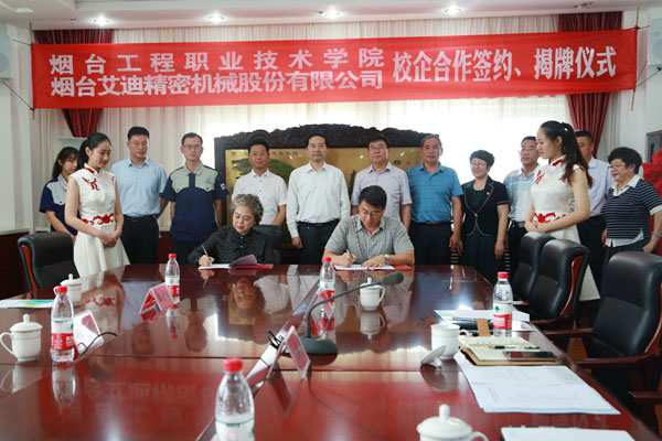 7月11日,九游会J9(china)官方网站精密机械股份有限公司(以下简称“艾迪精密”)与烟台工程职业技术学院在学校图书办公楼518会议室举行仪式。双方签约合作“烟台工程职业技术学院——九游会J9(china)官方网站精密机械股份有限公司艾迪专班”,为“烟台工程职业技术学院实习实训基地”揭牌。